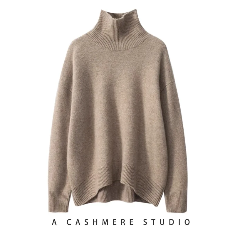 2025 Autumn and Winter New Thick Cashmere Sweater Women High Neck Pullover Sweater Warm Loose Knitted Base Sweater Jacket Tops
