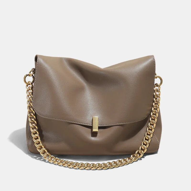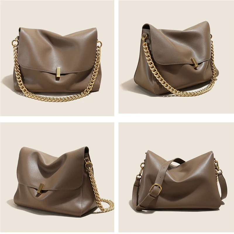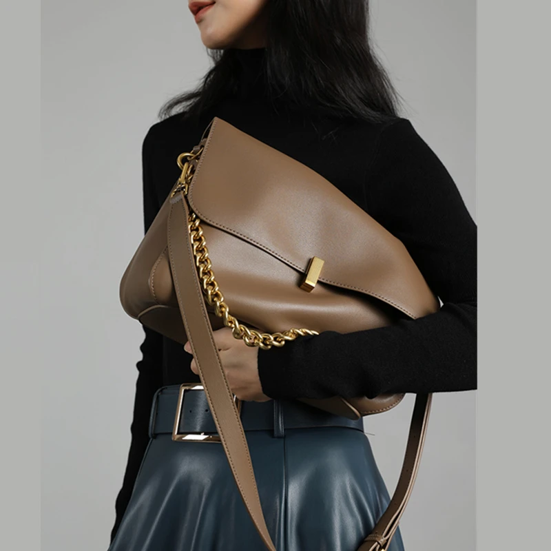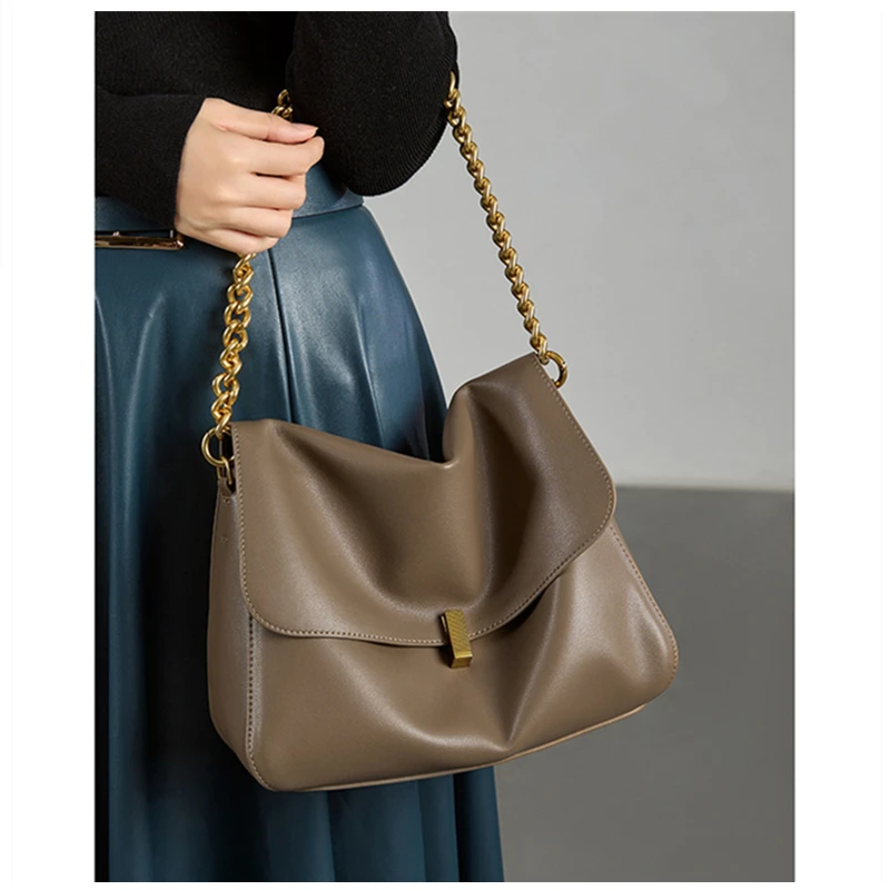 Burminsa Cowhide Genuine Leather Large Chain Shoulder For Women 2026 Luxury Designer Messenger Satchel Soft Work Ladies Handbags