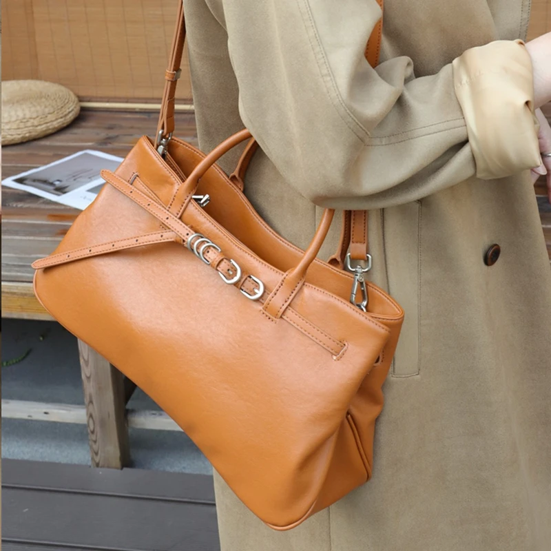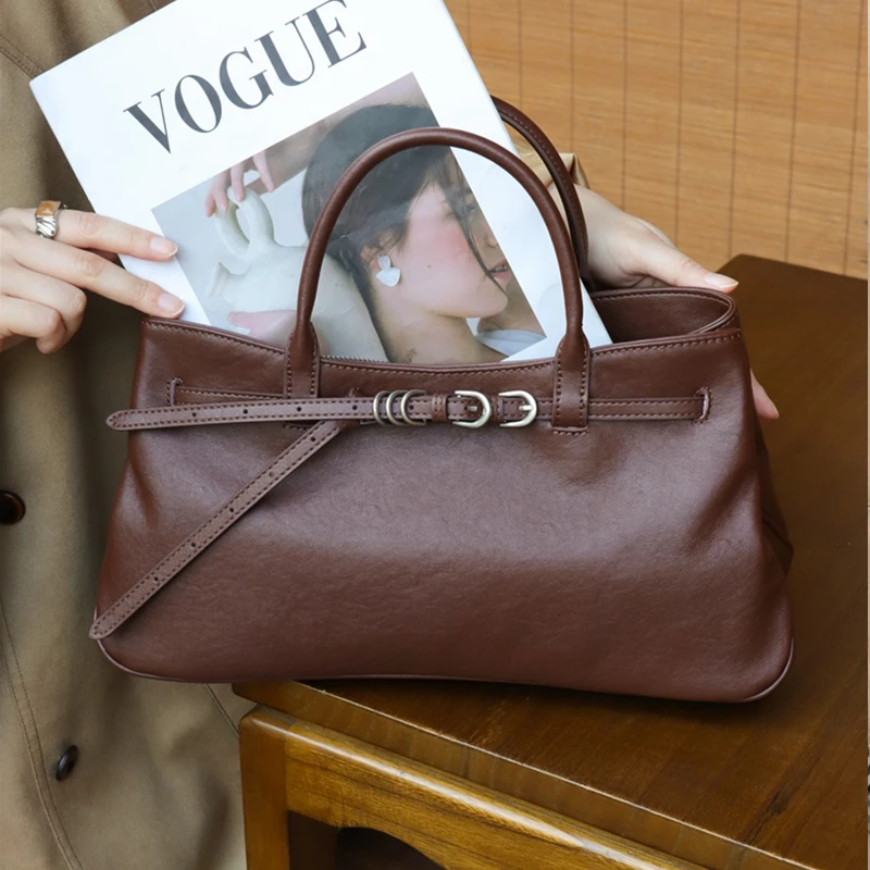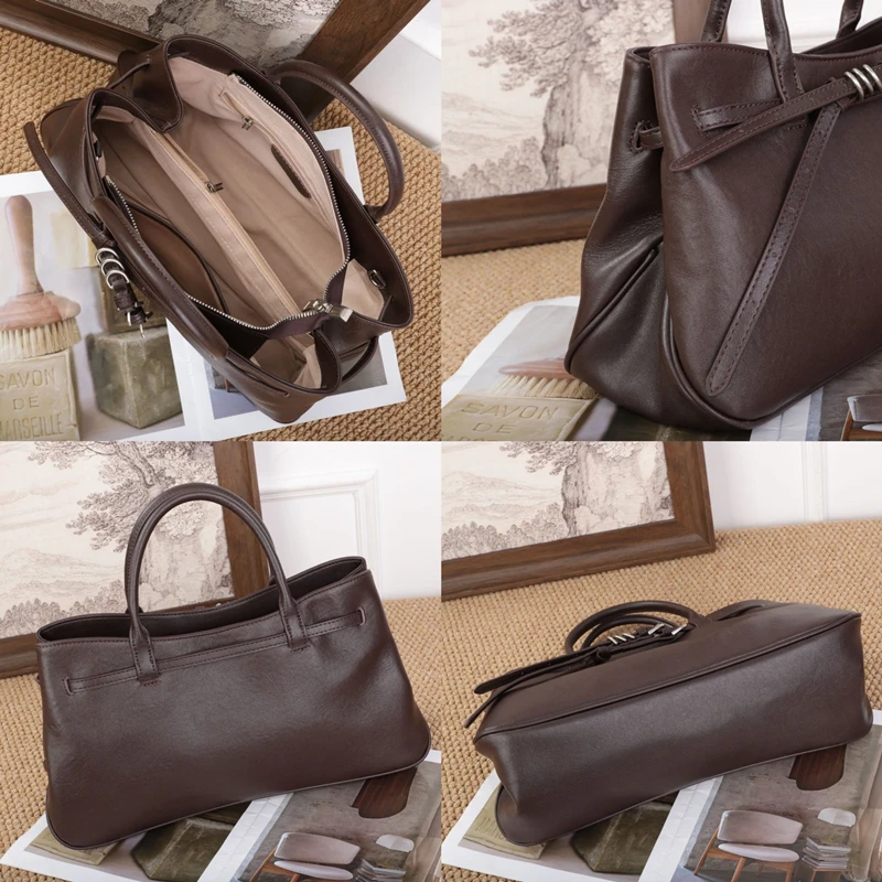 Burminsa Cowhide Genuine Leather Large Tote Handbags For Women 2026 Luxury Designer Shopper Work Ladies Shoulder Crossbody Bags