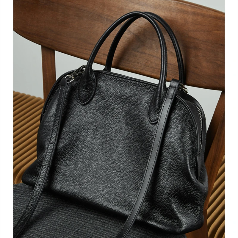 Cowhide Genuine Leather Large Shell Tote Handbags For Women 2026 Luxury Designer Office Ladies Shoulder Crossbody Bags