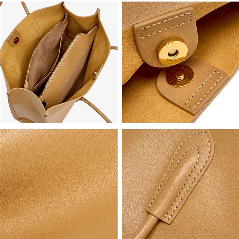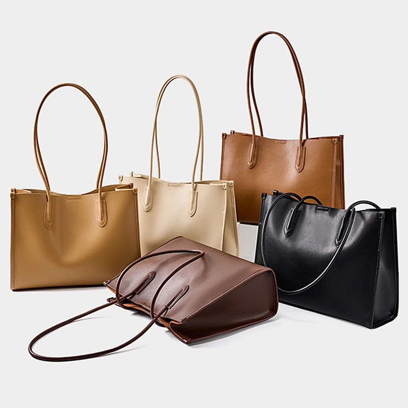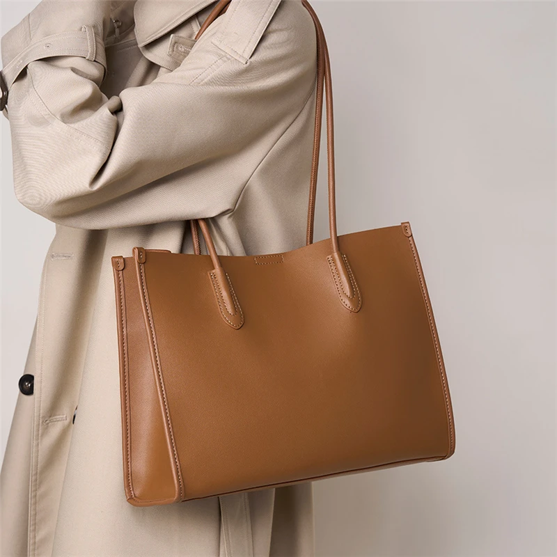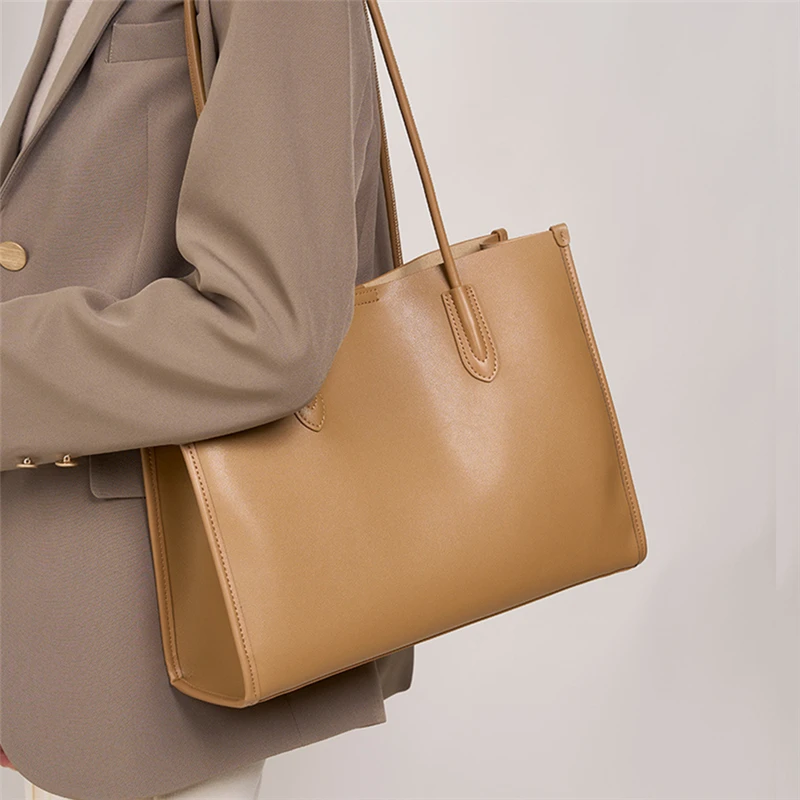 Cowhide Genuine Leather Large Soft Tote Bags For Women 2026 Luxury Designer Shopper Shoulder Bags Work Ladies Handbags