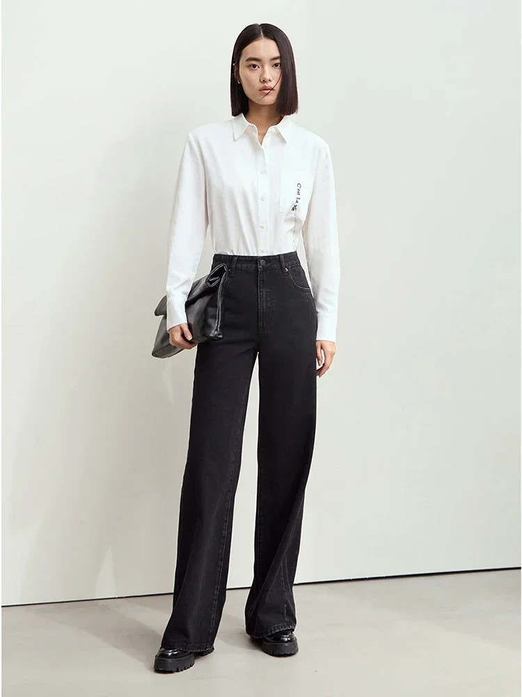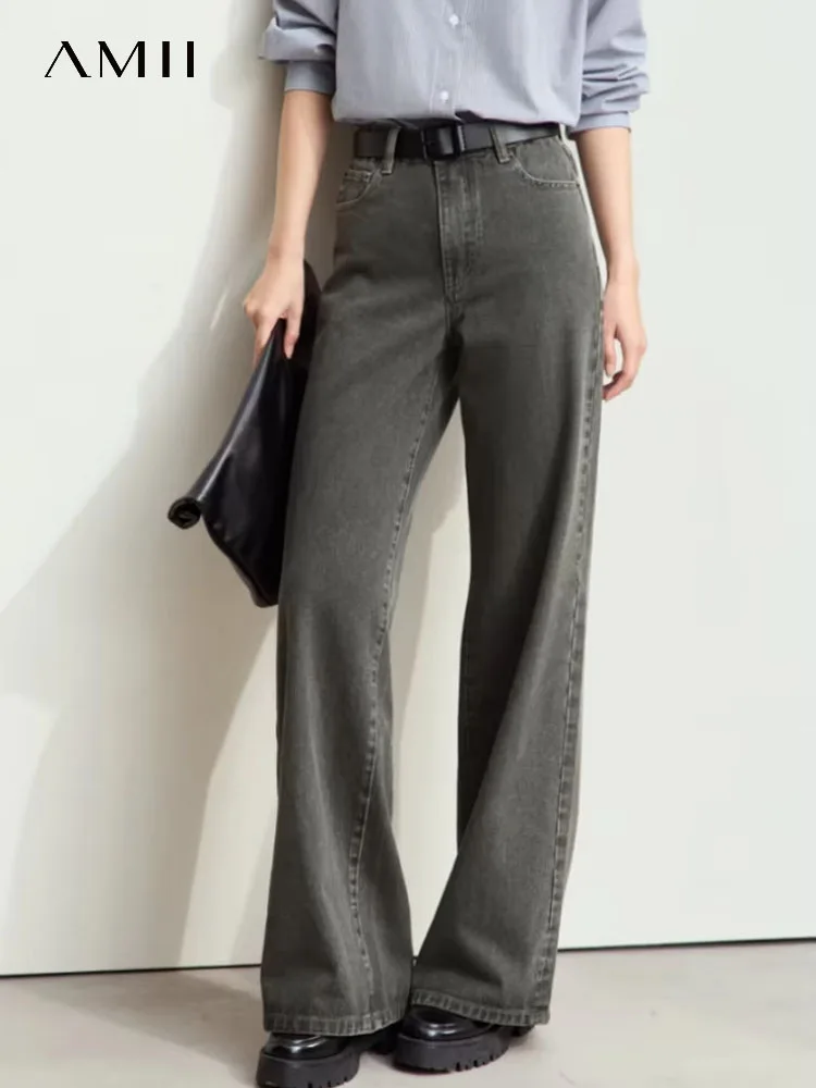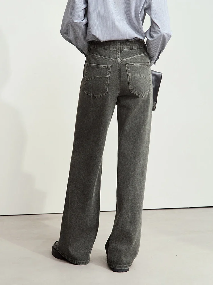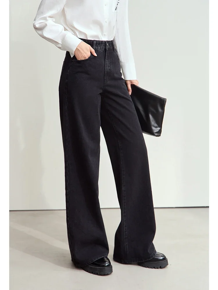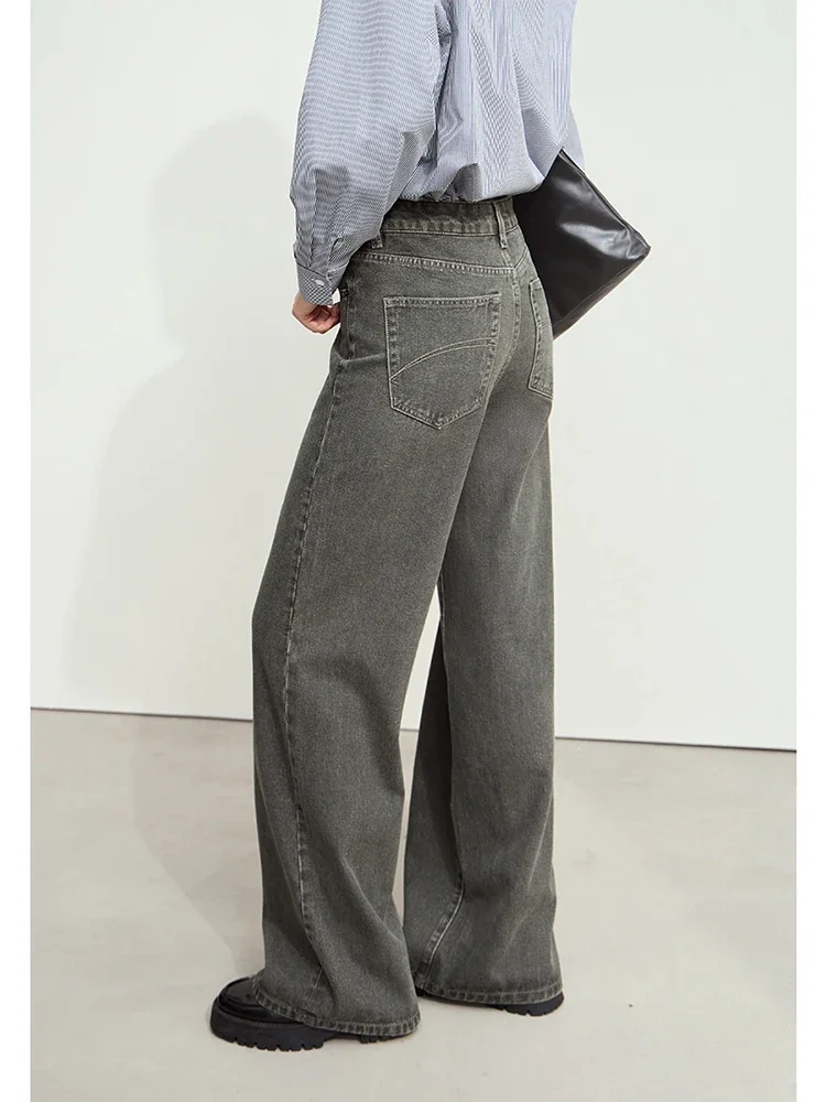 Minimalism Denim Pants for Women New Basic Retro Cotton Floor-length Jeans Loose Female Wide-leg Pants 12443226