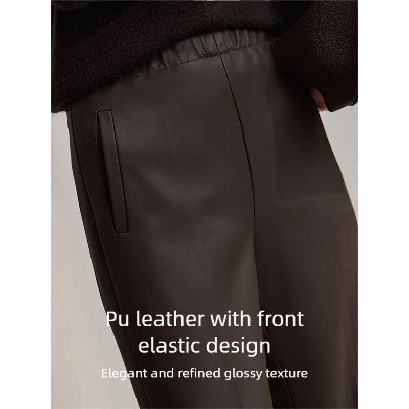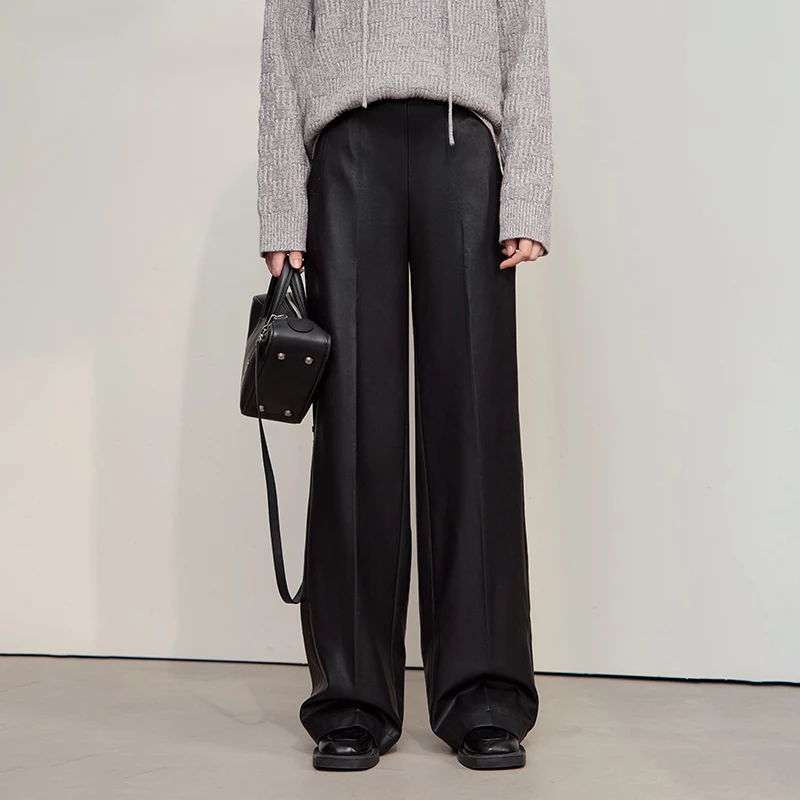 Pants For Woman 2025 Winter New Minimalist Commuter PU Leather Loose Wide-leg Pants Casual Office Lady Trousers 12524063