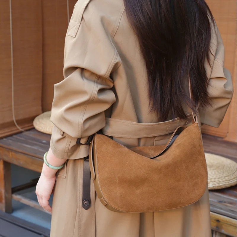 Suede Genuine Leather Hobo Shoulder Bags For Women 2026 Luxury Designer Crescent Crossbody Purses Work Ladies Handbags