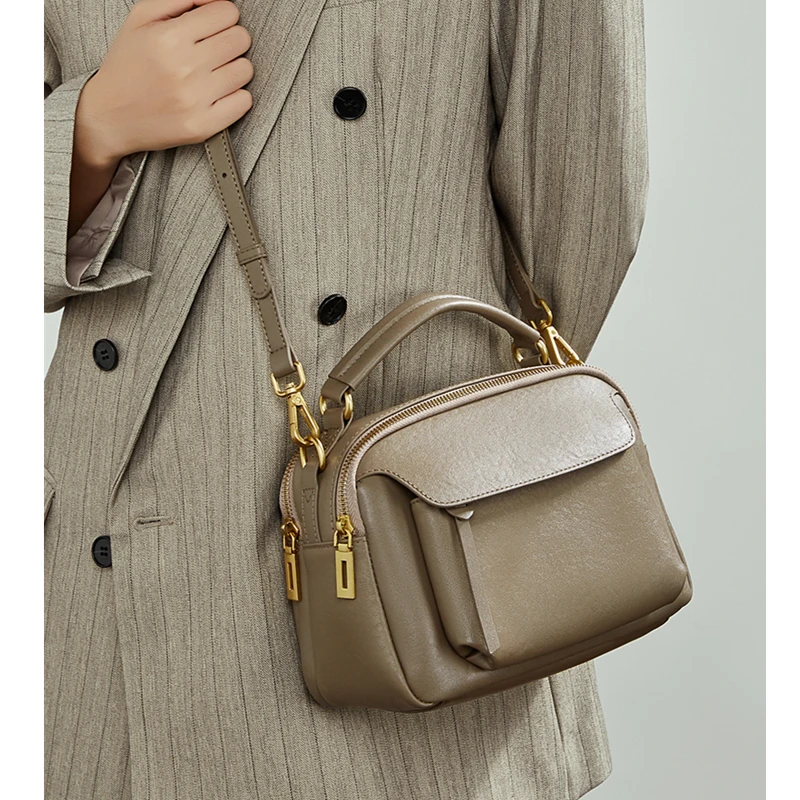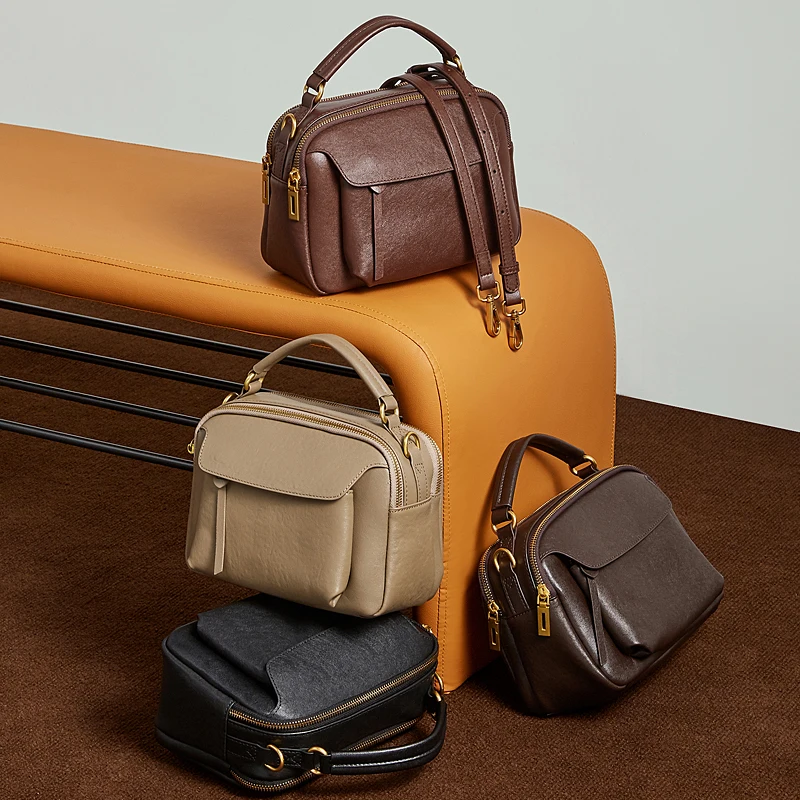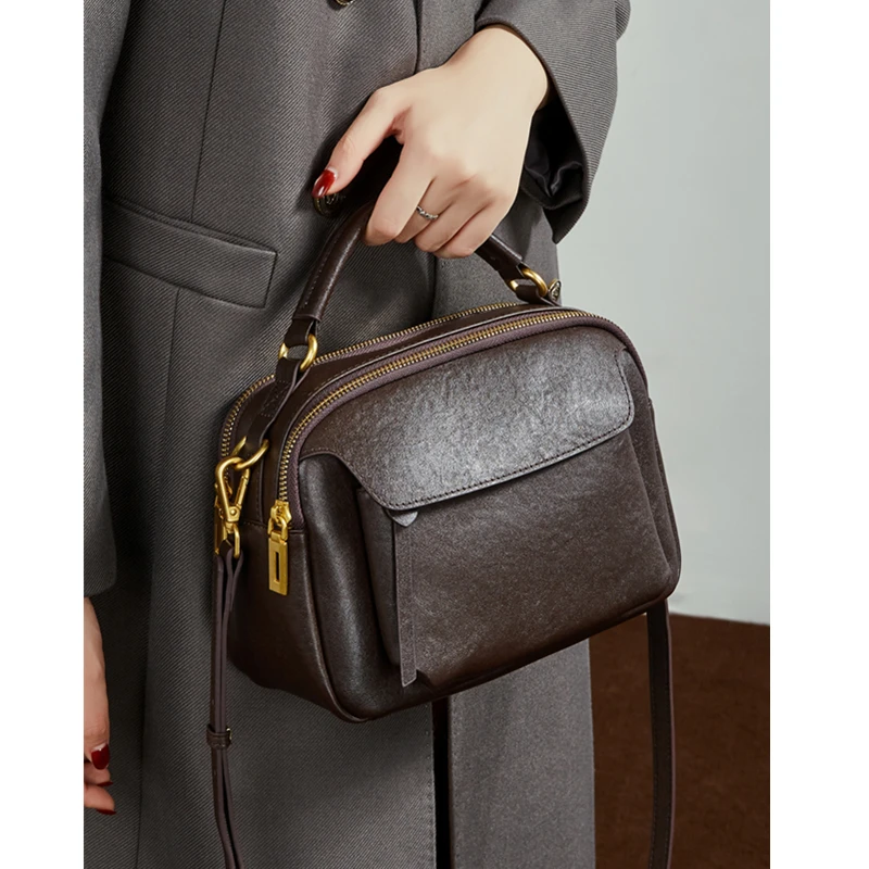 Vintage Genuine Leather Pillow Tote Handbags For Women 2026 Luxury Designer Boston Work Ladies Shoulder Crossbody Bags
