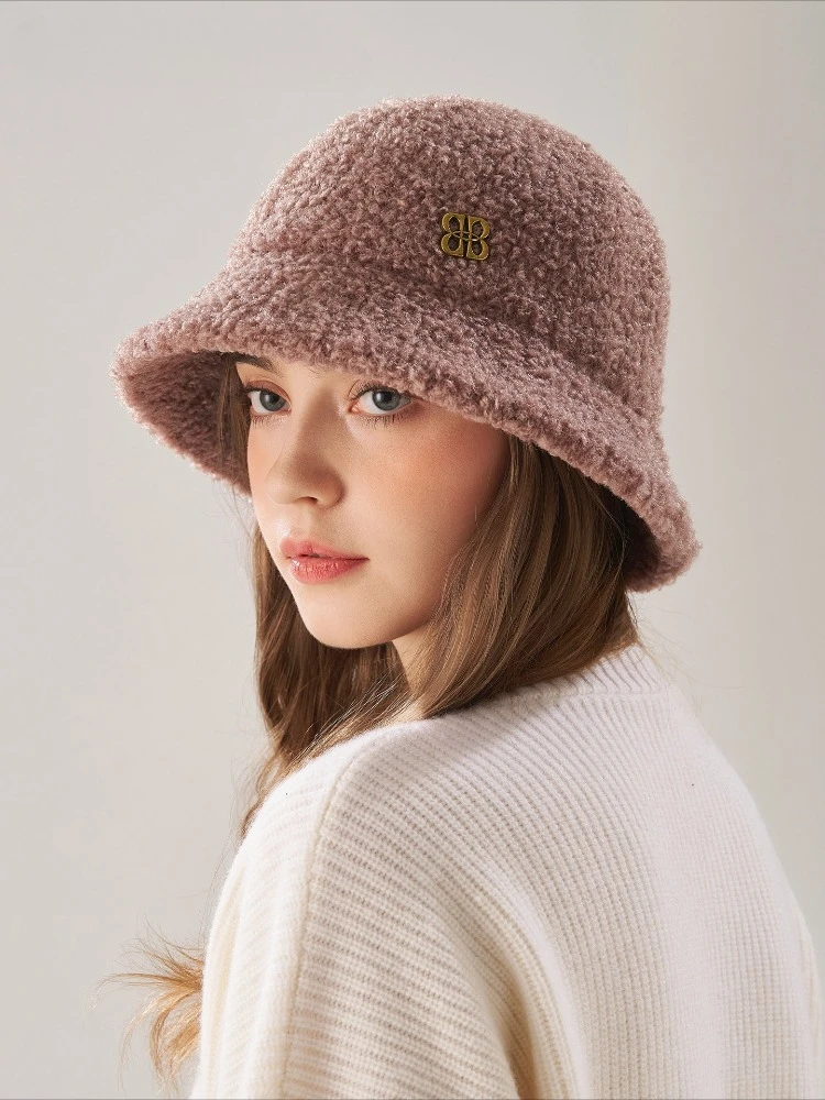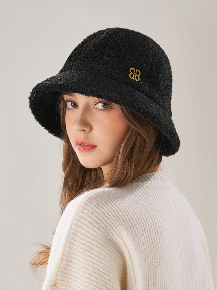 Warm Plush Bucket Hat for Women Winter Shearling Fleece Basin Cap Korean Fashion Casual Streetwear Outdoor Hat