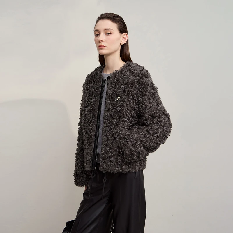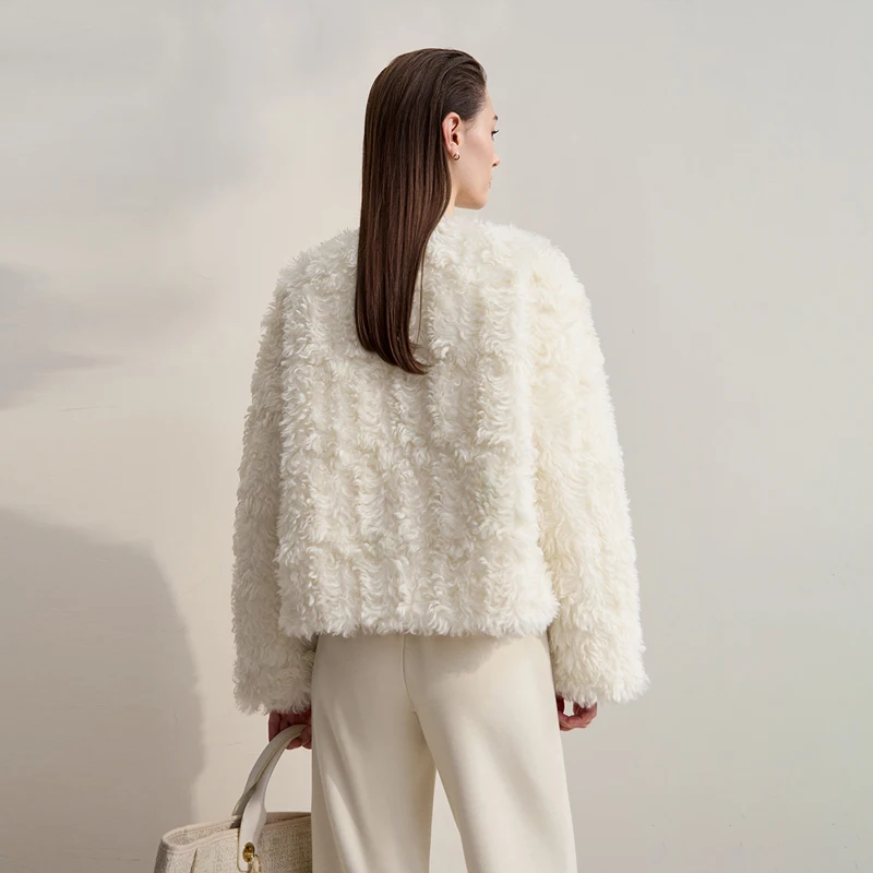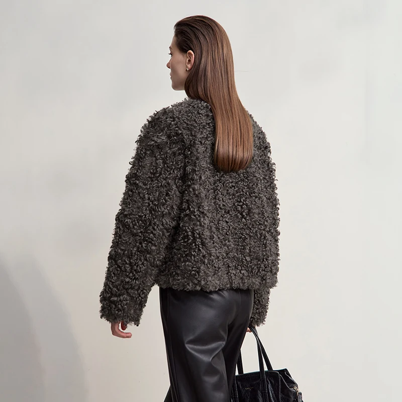 Women’s Coat 2025 Winter New Minimalist O-neck Loose Coats Woman Elegant Short Zipper Long Sleeve Clothing Female 12514003